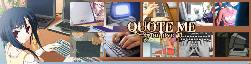 ...randomly, I have decided that everytime the topic changes, so too shall the topic banner up here. In other news, I don't have any other quotes, seeing as I've been a BC-addict, and have been busy leveling my new Draenei and Blood Elf. Yay~